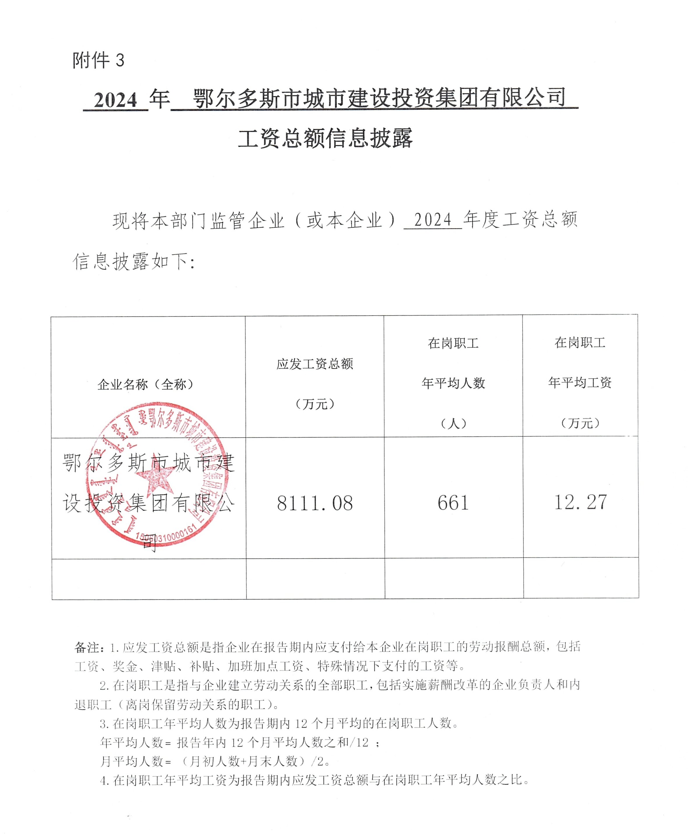 2024年鄂尔多斯市城市建设投资集团有限公司工资总额信息披露